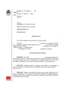 El Juzgado lo Social de Madrid  ha estimado la demanda, dado que desde que se suscribió el contrato de interinidad no ha habido interrupción del vínculo laboral, realizando siempre las mismas funciones, sin que la empleadora haya desplegado conducta ni actuaciones tendentes a lograr la definitiva cobertura de la plaza o a propiciar su amortización desnaturalizándose la naturaleza del contrato de interinidad lo que determina, conforme a la doctrina expuesta, la naturaleza de indefinida no fija de la relación laboral’’.